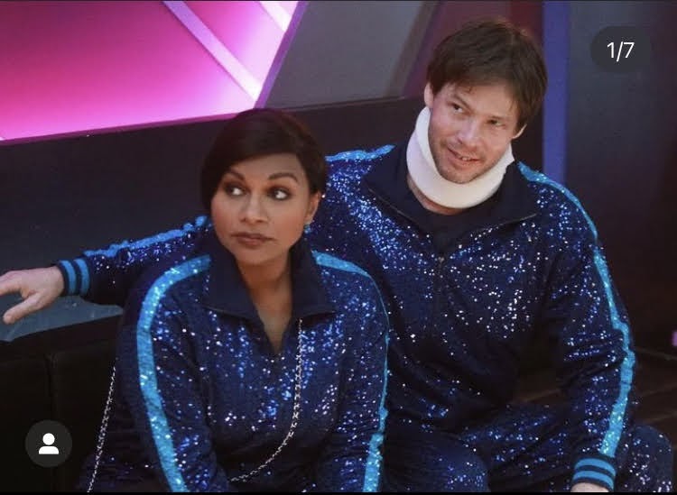 theyve got her trapped in the fashion illuminati too! mindy kaling in all types of blu’s. even in that show or whatever is up in that second pic