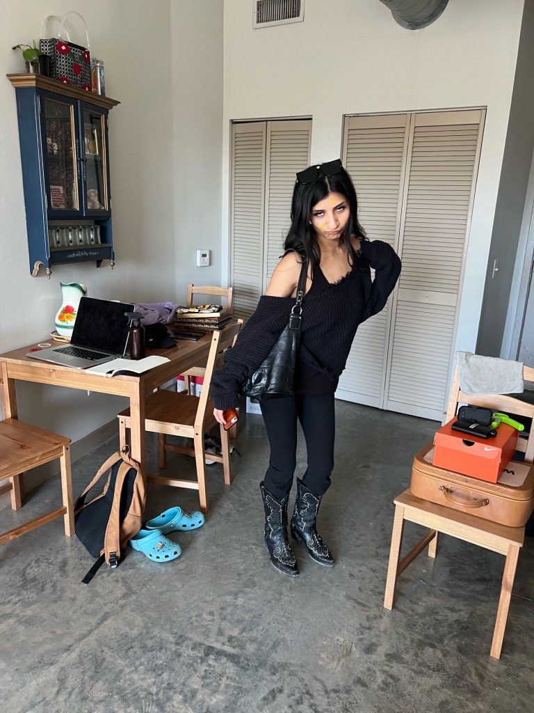 full black fit. Casual, yet you can tell time was taken to set a tone. A good outfit is one that can speak for you. So yes! Keep it simple, but don’t forget the vision of simplicity takes time to create.